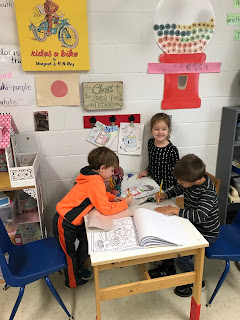 Now we did leave our shoes in the hall... but planned ahead by making these "wooden" paper clogs... just in case Sinterklaas made it all the way over here on his horse. (We thought it might be better keep treats out of our real shoes since we had just come in from the playground.) It was one of our favorite days at the preschool... LIBRARIAN DAY!!!! So we went ventured to the chapel in our sock feet...